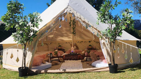 Our beautiful 5m Bell Tents are the perfect oasis for younger or older children to create magical memories in your backyard to last a lifetime!